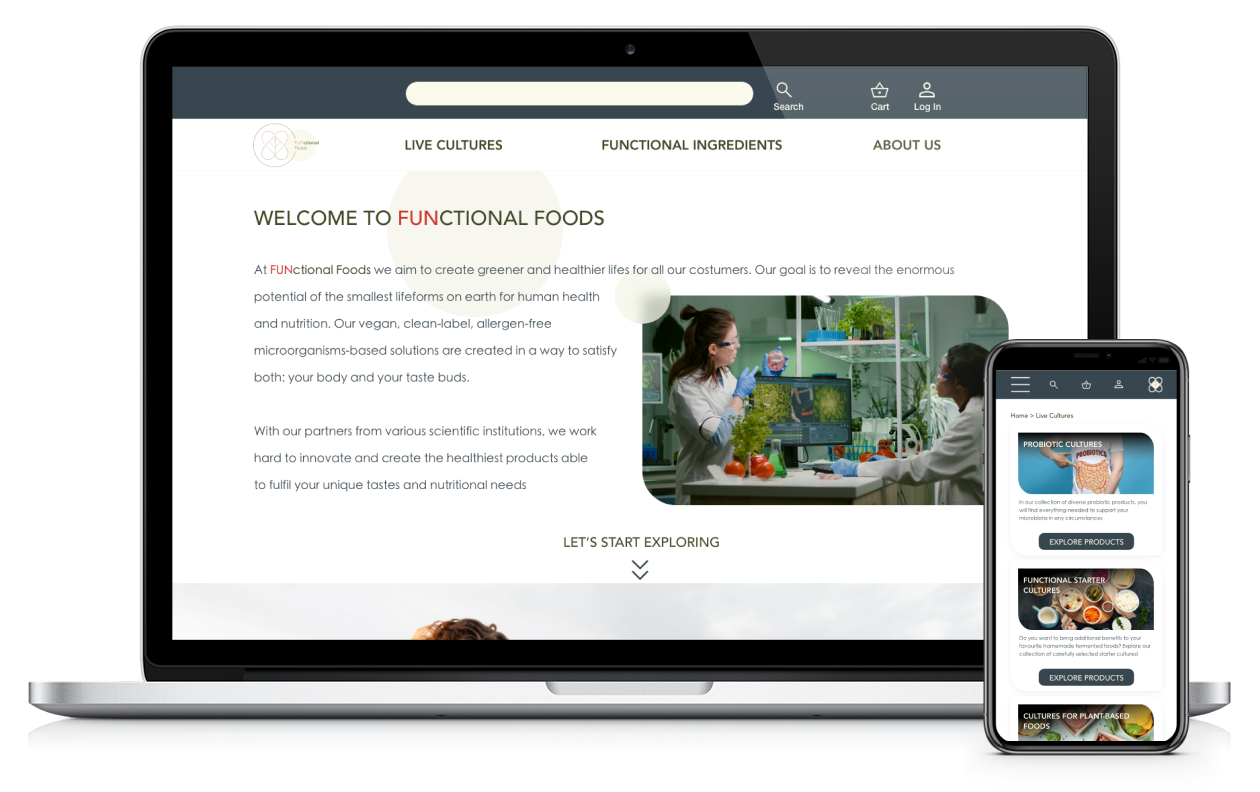Finding and purchasing vegan microbial products is an uneasy and time-consuming task. To address this issue I came up with the idea of the "FUNctional Foods" e-commerce website