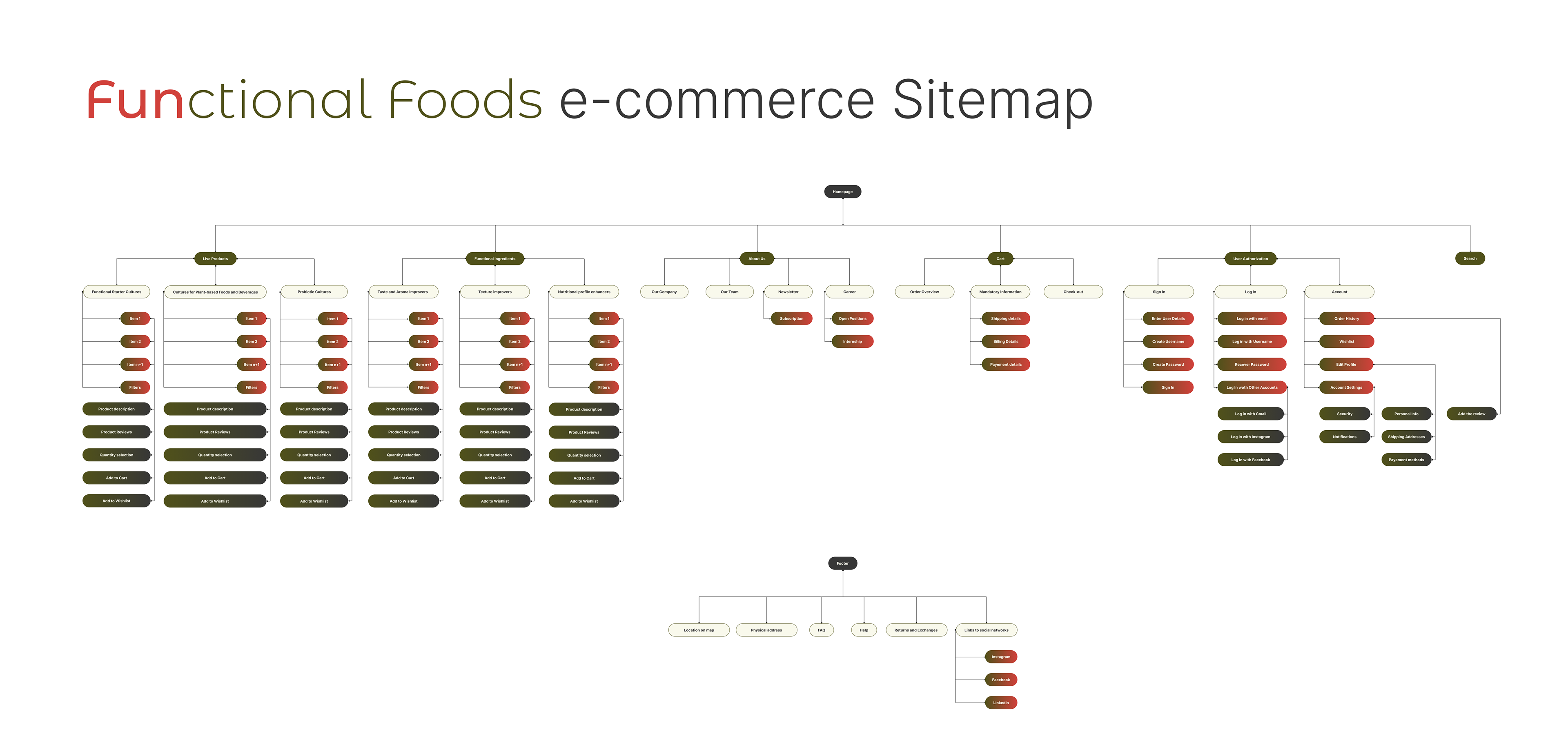 In order to ensure cohesion and consistency throughout my design of the "FUNctional Foods" website, I began by creating a sitemap to serve as a guide for its organization and structure